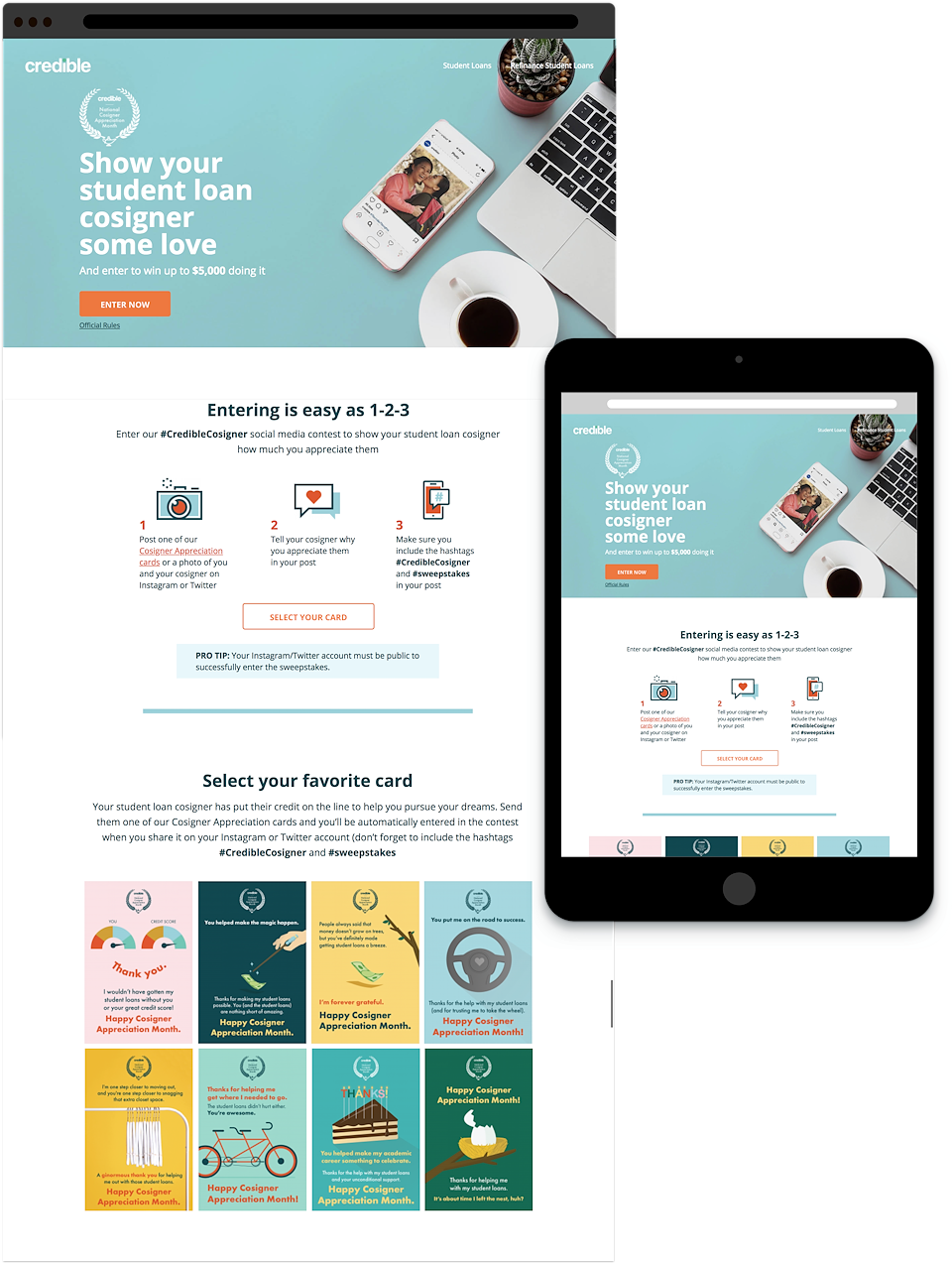 Credible is a San Francisco–based fintech startup specializing in the student loan space. As the company’s first-ever Creative Director, I was responsible for defining and driving the creative vision, building out integrated campaigns, and elevating the brand’s marketing efforts to new heights.